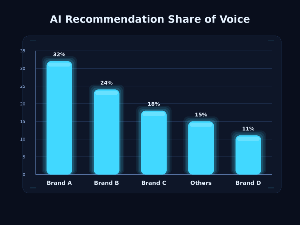 Instead of receiving 10 blue links, they receive a summarized list—often with 3–5 brand mentions.